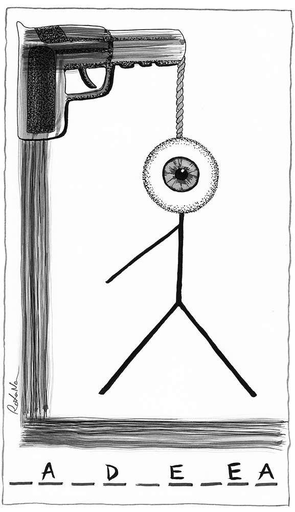 Poezia pe care am avut-o de ilustrat a primit poate că cea mai dură imagine din tot ceea ce am făcut până acum, dar așa s-a simțit și așa a vrut să se aștearnă pe hârtie. Am vrut și sper că am reușit să realizez un contrast între inocența unui joc de cuvinte și realitatea „răsfățată” de poet, o realitate pe care nu o poți trece cu vederea.