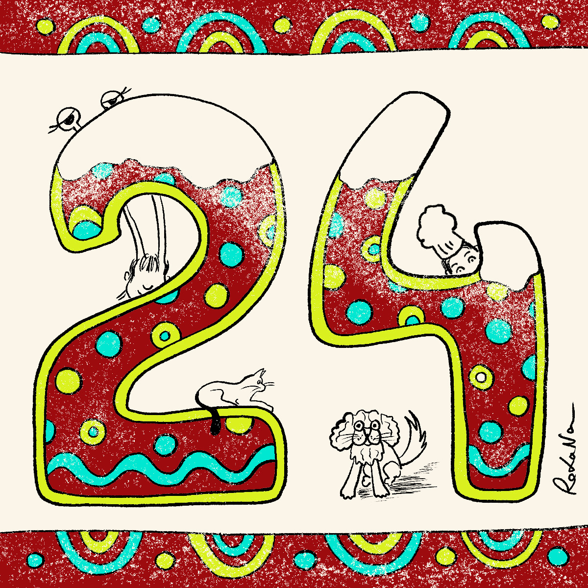 Cum s-a aflat deja din povestea 20 și 23, Moșul e în preajmă - că vrem, că nu vrem, că mai putem, că nu mai putem, că e greu, că e ușor, că plouă, că ninge sau că ne bate soarele în cap. Îți dorim să te găsească pe partea luminoasă a lumii, pe douăzeci și patru decembrie, în următoarele zile și toată viața, dacă se poate.